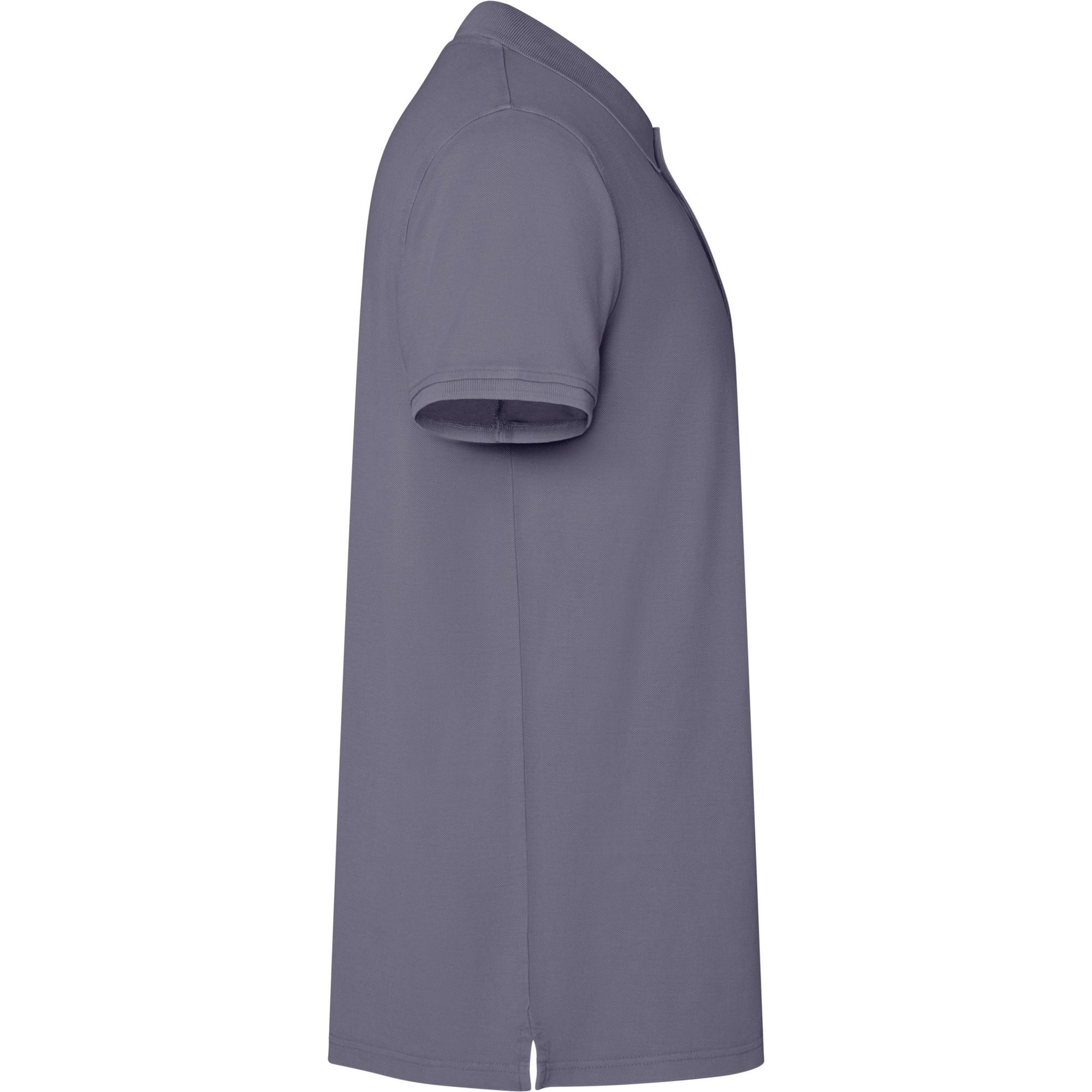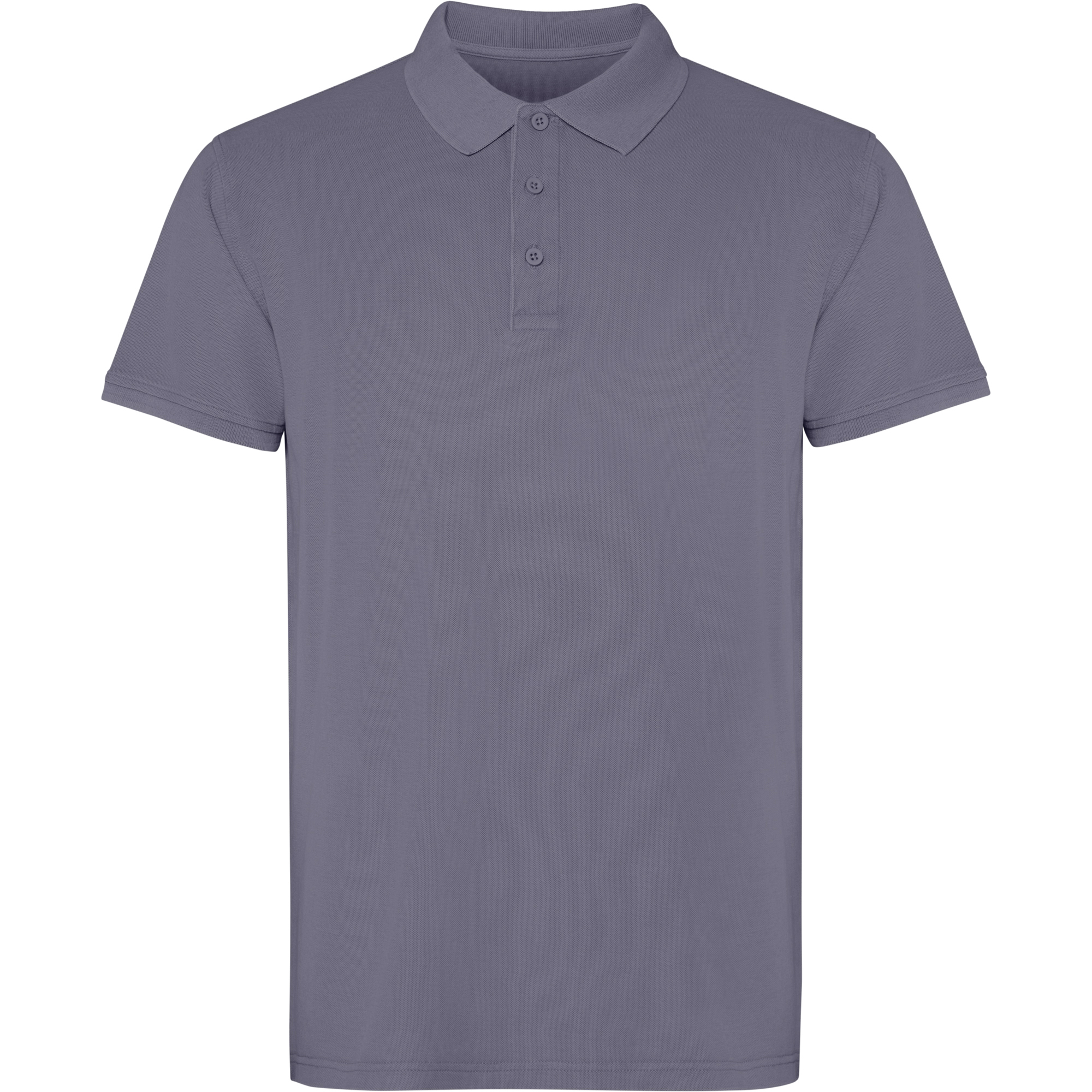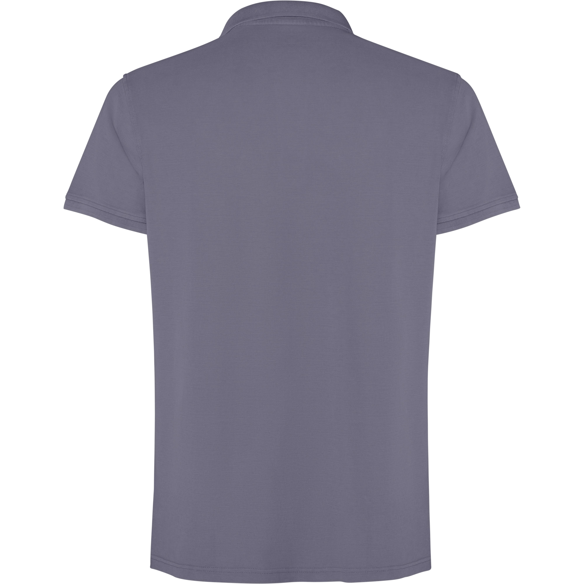 Unisex short-sleeve polo shirt, 100% cotton with an acid-wash finish. Ribbed 1×1 collar and cuffs, with side openings. Tone-on-tone coverstitch. Placket with three buttons.