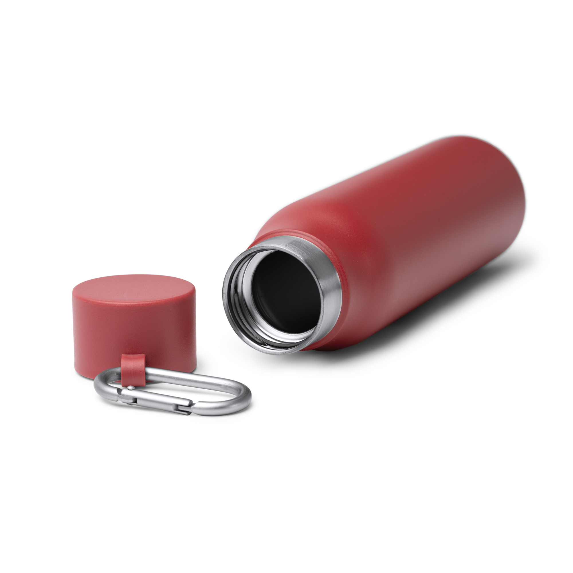 Termosflaske med dobbelvegg laget av resirkulert 304 rustfritt stål med matt finish. Kapasitet: 550 ml. Matchende hette. Inkluderer karabinkrok for bæring.