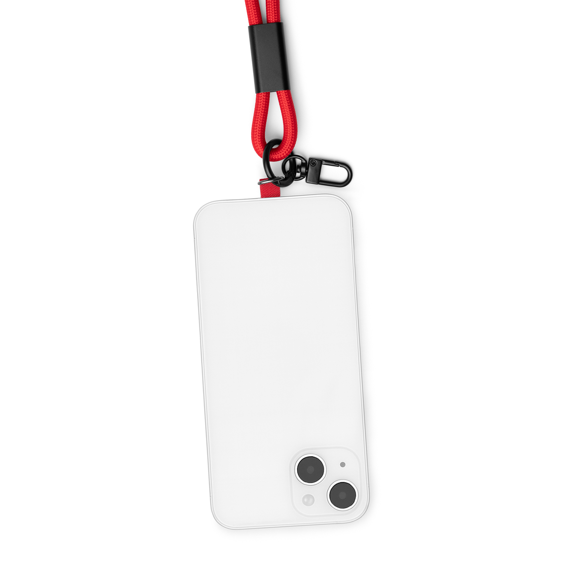 Festesnor laget av resirkulert nylon med smarttelefonholderfunksjon og type-C-tilkoblingskabel i begge ender. Kabelen fungerer både som lade- og dataoverføringstilkobling. Med liten karabinkrok i den ene enden for å bære andre gjenstander.