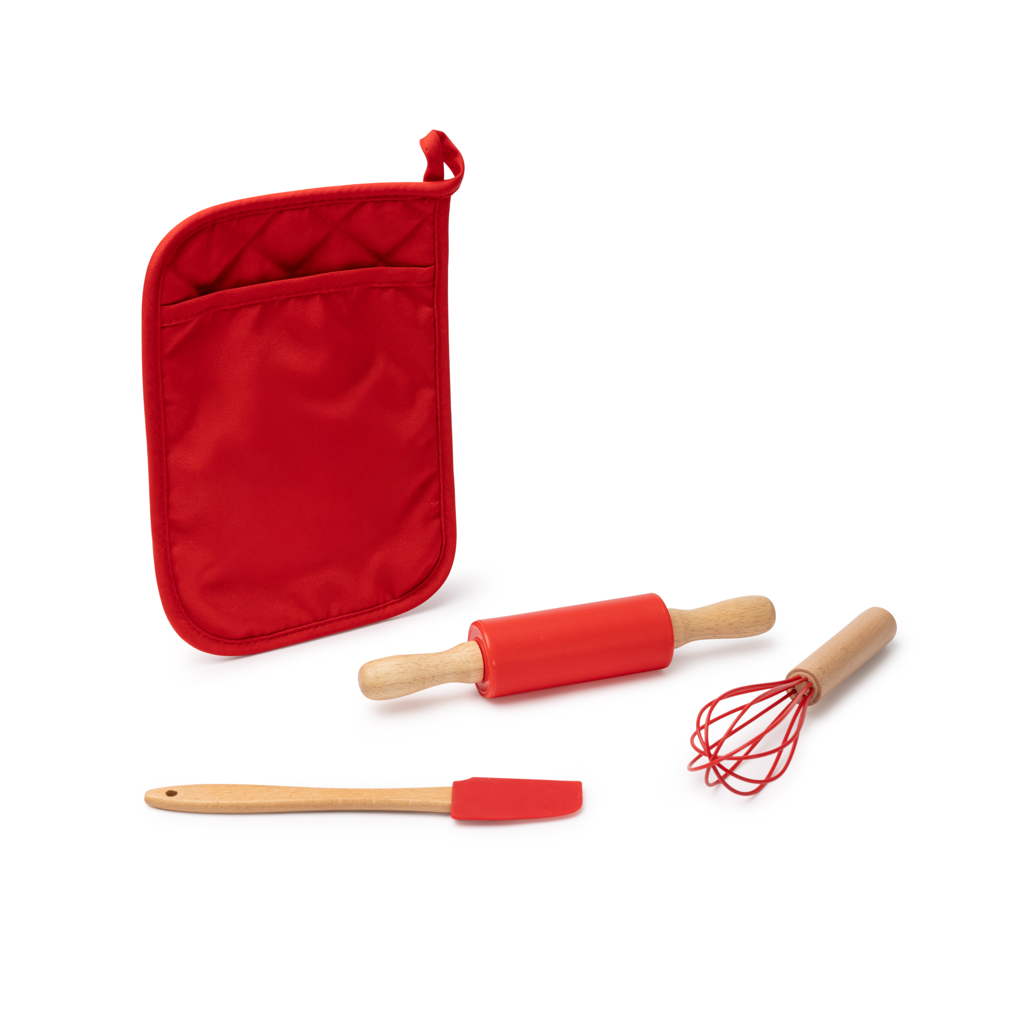 Kjøkken sett bestående av 3 elementer for å lage småkaker hjemme. Inkluderer rullepinne, visp og slikkepott med juledesign. Inkluderer multifunksjonell hylse for oppbevaring av tingene i settet.