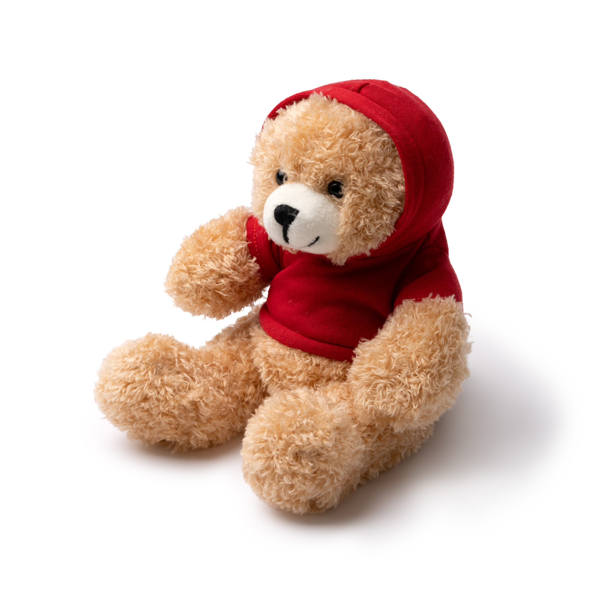 Plysj bamse med glatt genser laget av soft-touch polyester. Også ideell som en gave. Sittende design.