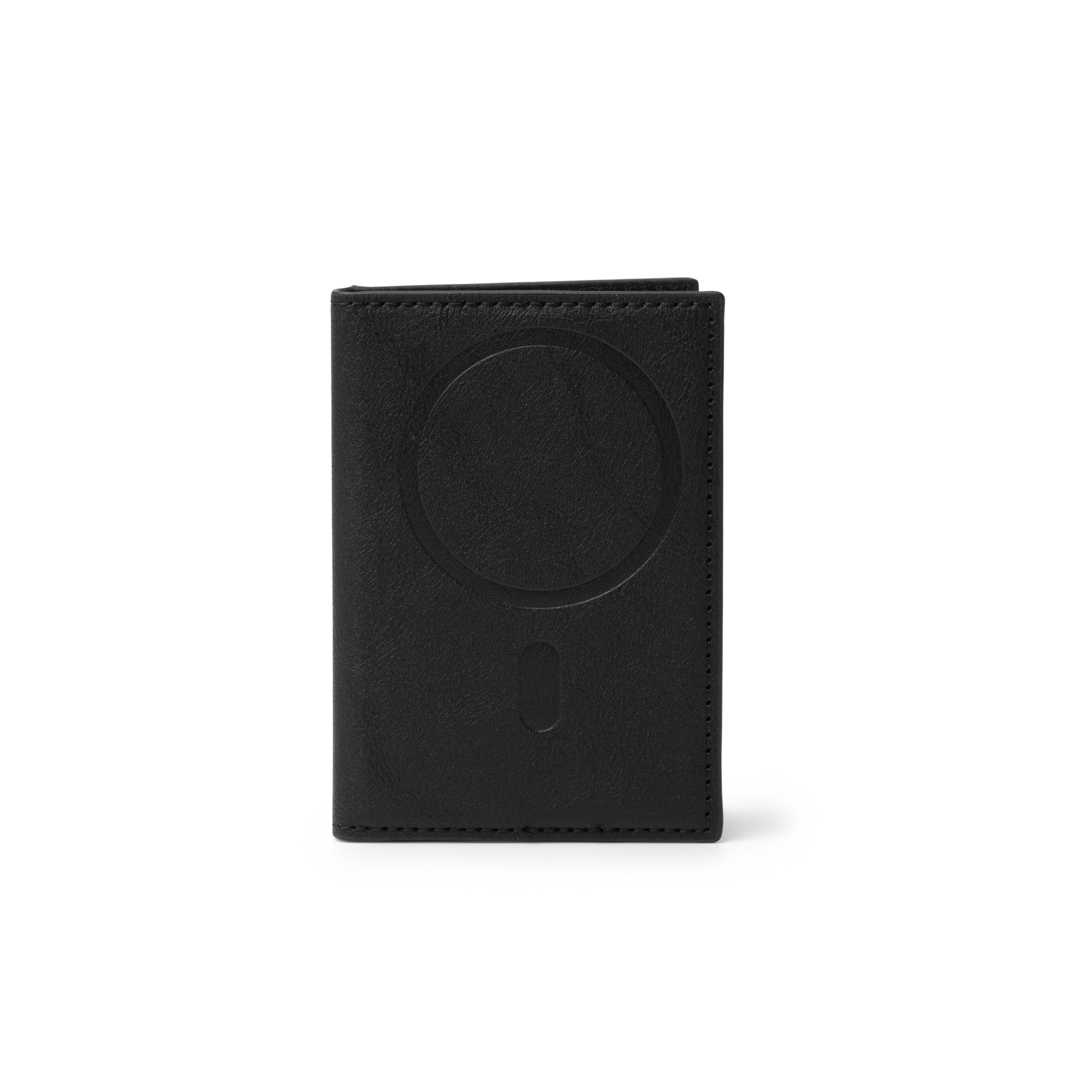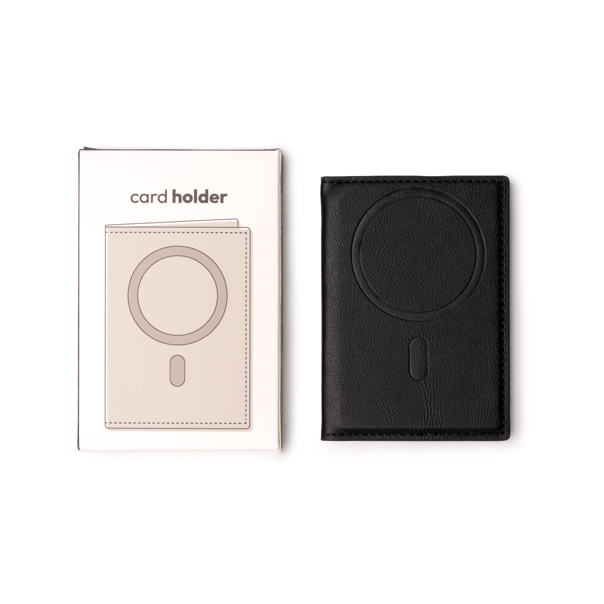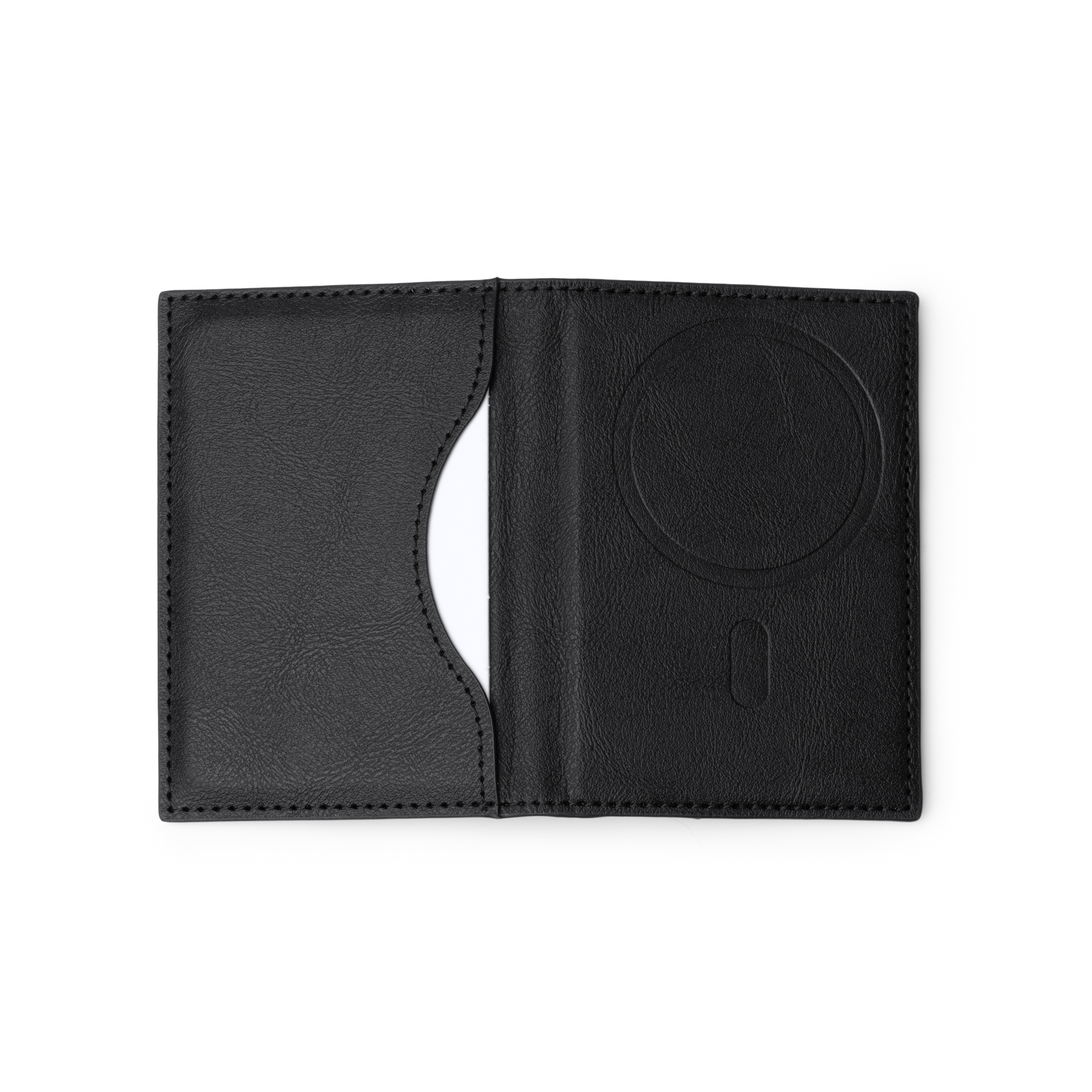 Brettende magnetisk kortholder laget av RPET. Ideelt tilbehør for å bære kortene dine ved siden av telefonen takket være det magnetiske systemet. Med tre interne og ett eksternt rom for forskjellige kort.