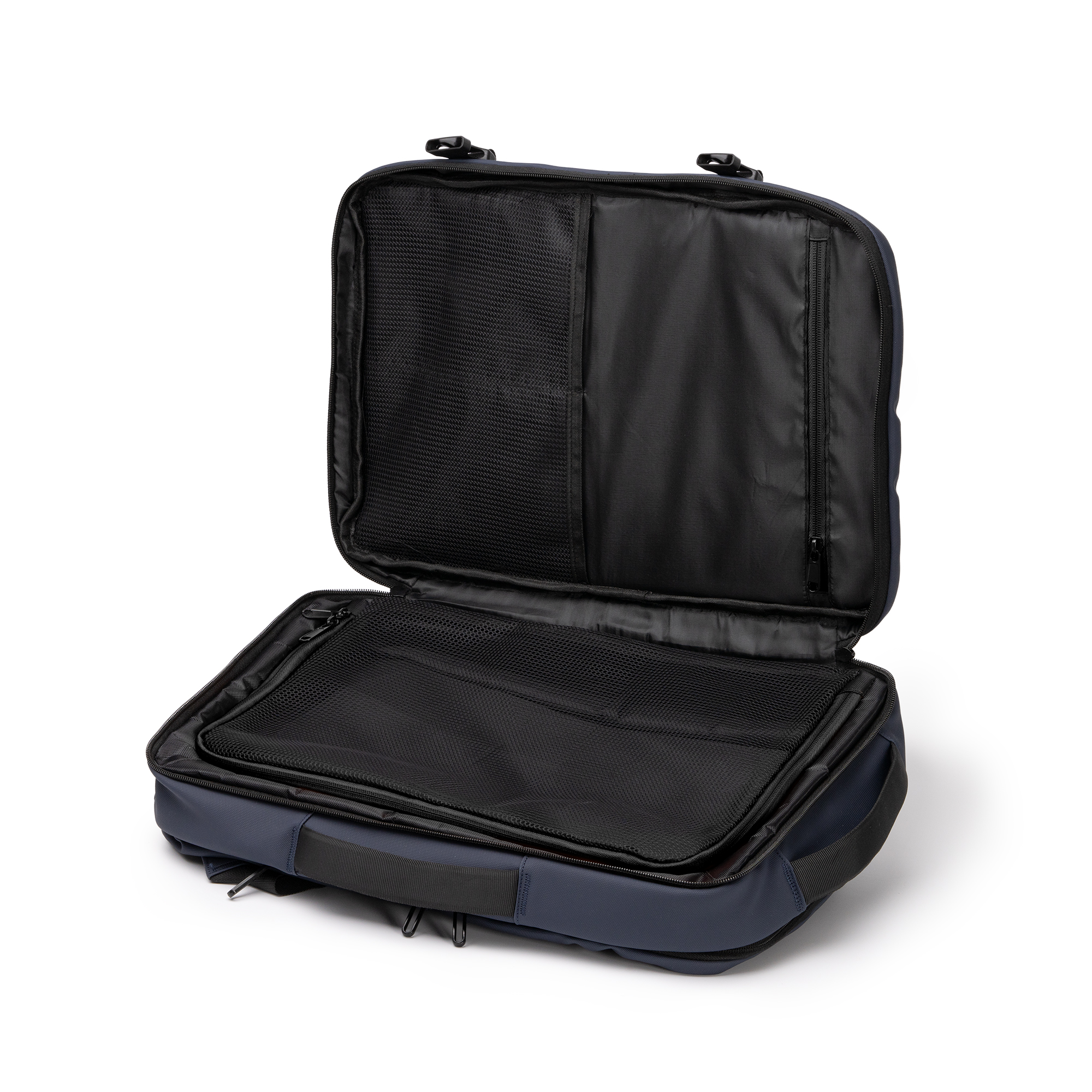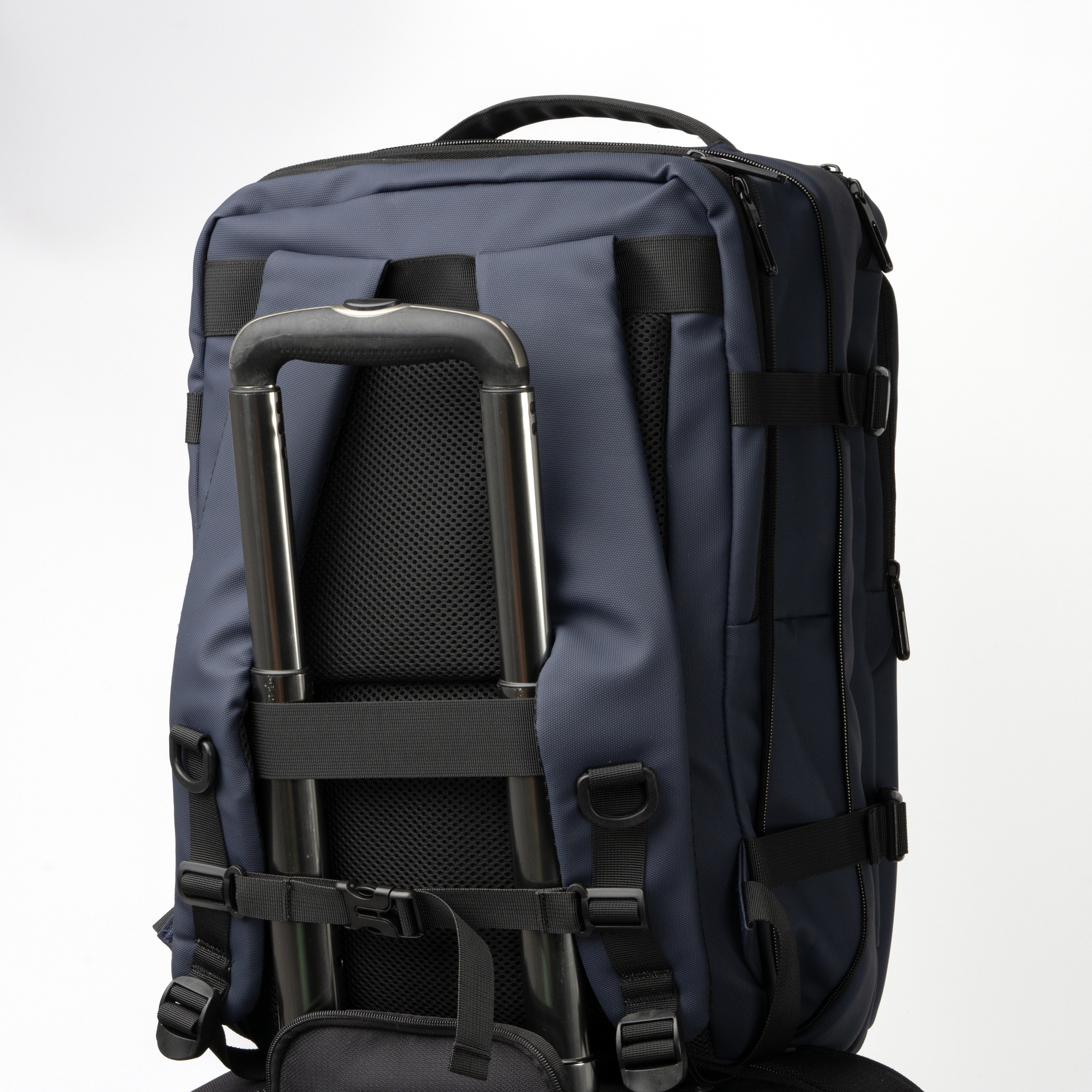 Praktisk uttrekkbar ryggsekk laget av PU skinn. Den har stor kapasitet og komfort, da den har polstret rygg og håndtak og en praktisk vognstroppe. I hovedrommet er det en nettingseparator med glidelås og flere mindre innvendige lommer for oppbevaring av små gjenstander. Den har et fremrom med små lommer og en stropp med innebygd nøkkelring, slik at du ikke mister nøklene dine. Har en fremlomme for å bære mindre gjenstander, samt en baklomme med et dobbelt polstret rom for å bære den bærbare datamaskinen på opp til 15″ ved siden av en annen elektronisk enhet. Inneholder sidekarabiner som gjør at dimensjonene kan justeres og en opningsglidelås som gjør at de kan forstørres. En ekstern batterikontaktkabel er inkludert på den ene siden. Panelene er polstret for å beskytte dine personlige eiendeler, og håndtakene er justerbare.