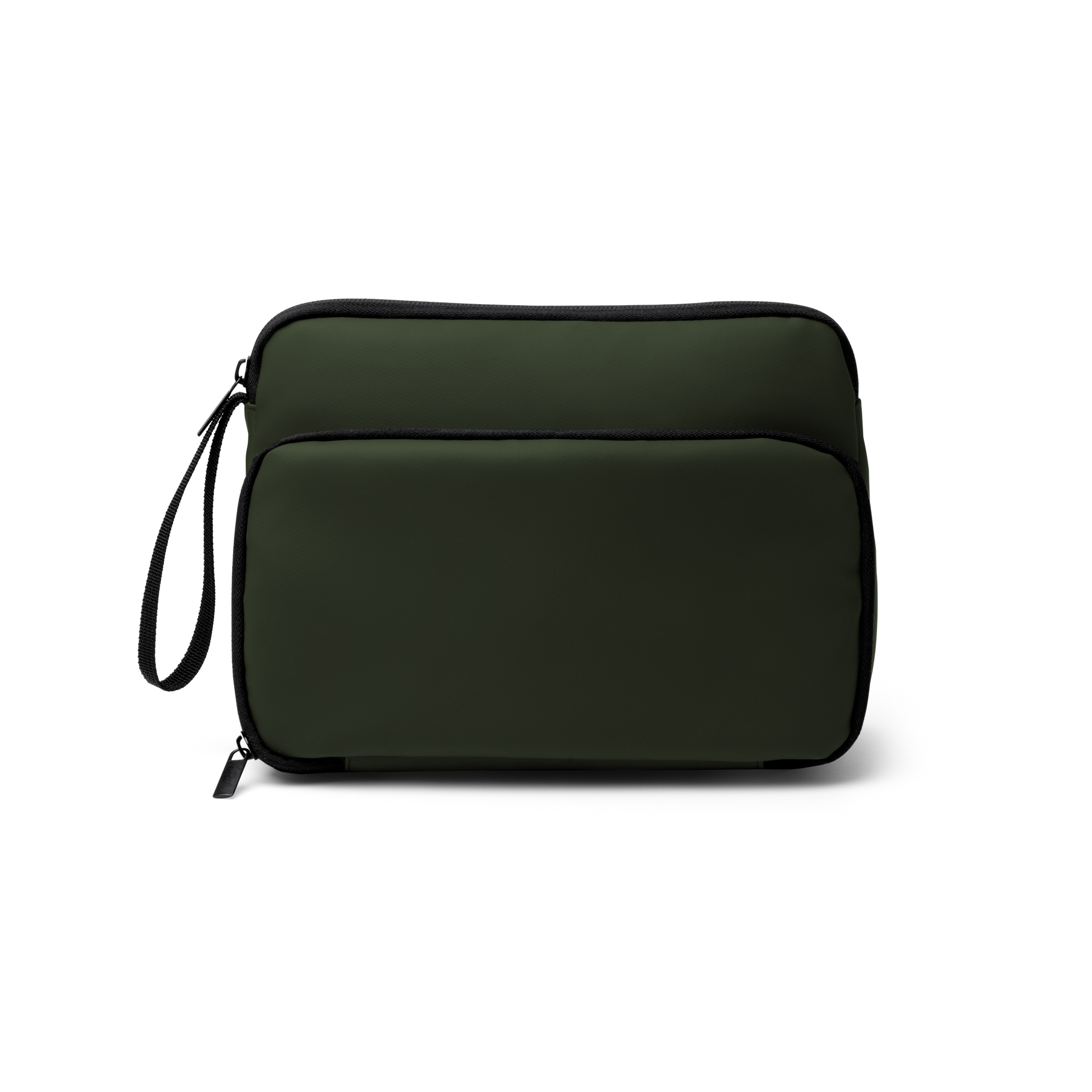 Toalettveske laget av myk PU skinn i en trekantet form. Med hovedrom med innvendige nettinglommer. Med fremlomme med dobbel glidelås og full åpning med elastiske skillevegger for å klassifisere ulike gjenstander. Sidene på denne toalettvesken er polstret, noe som gjør det til et trygt alternativ å oppbevare og beskytte hygiene- og skjønnhetsartikler. Vesken har også et bærehåndtak for å ta den hvor du vil.