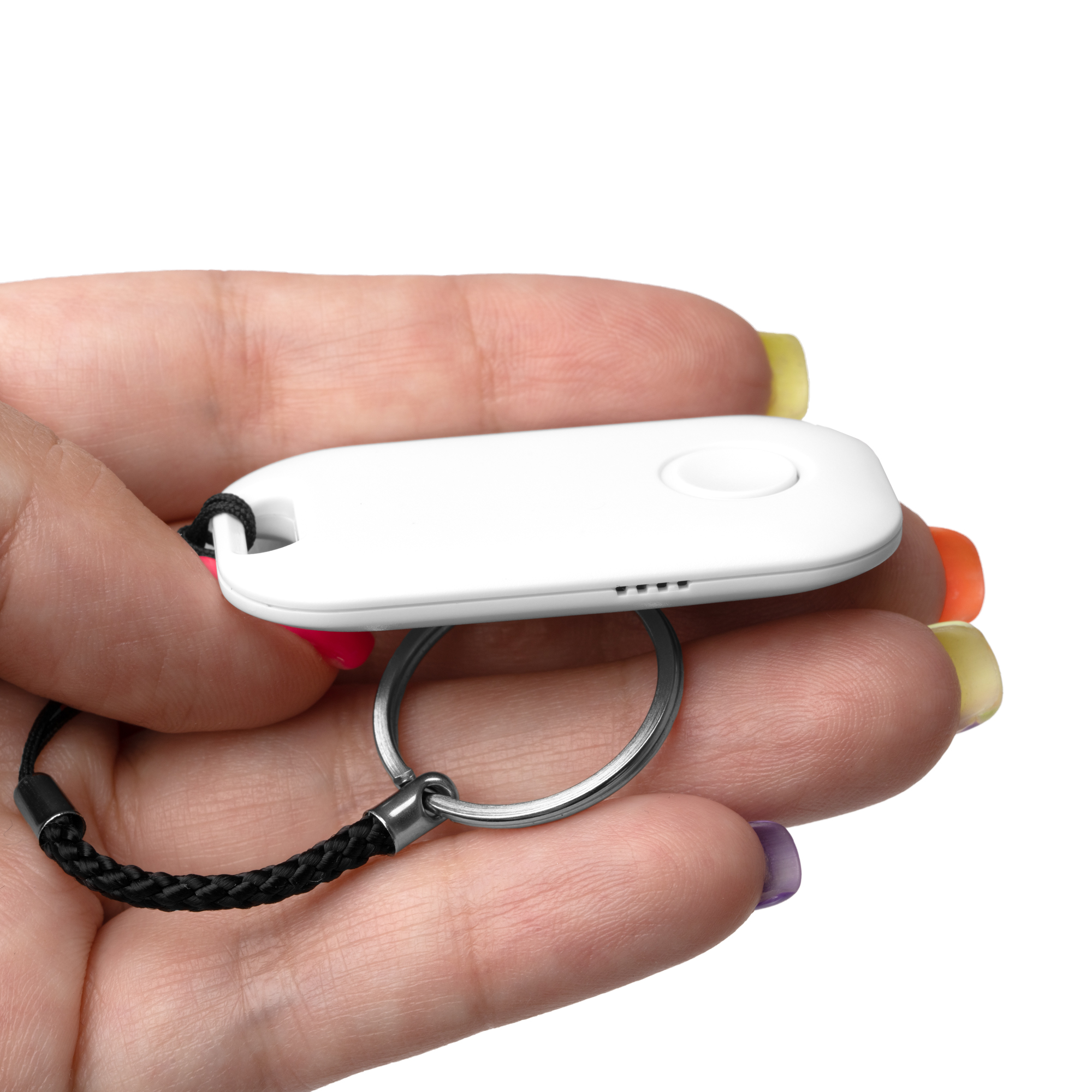 Smart tracker laget av ABS. Har iOS-systemer med Apple Find My. Lokaliseringsfunksjon ved lydalarm. Inkluderer nøkkelring. Batteridrevet.